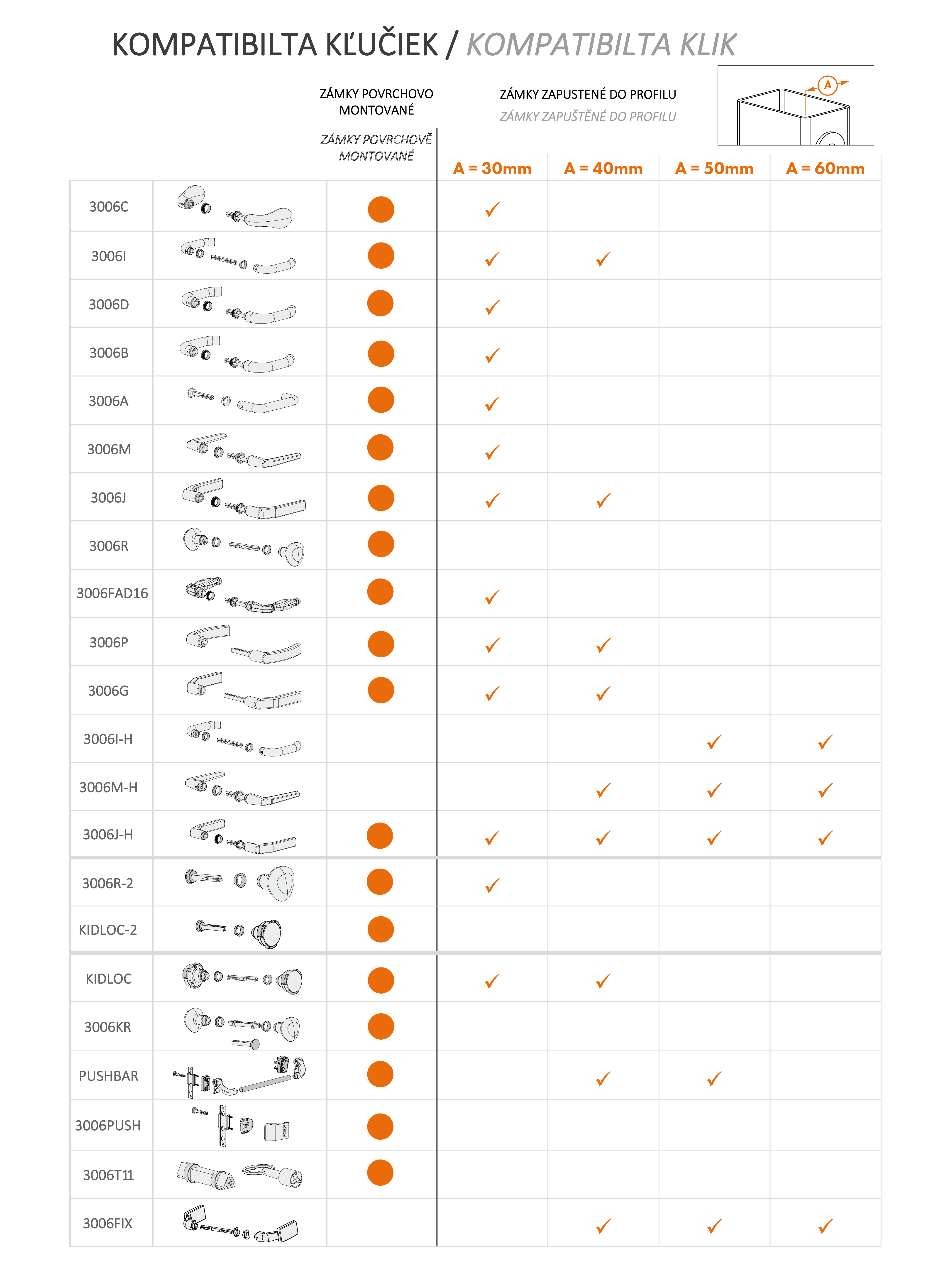 1 PÁR LOCINOX® 3006M - hliníková klika s plastovými kroužky, čtyřhranem a jistícím šroubem