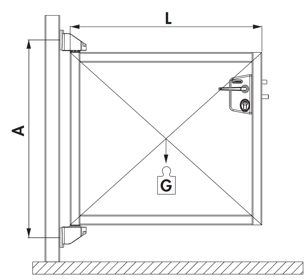 - Maximální povolená hmotnost brány „G“: 218 KG / PÁR (spodní pant je nosní)