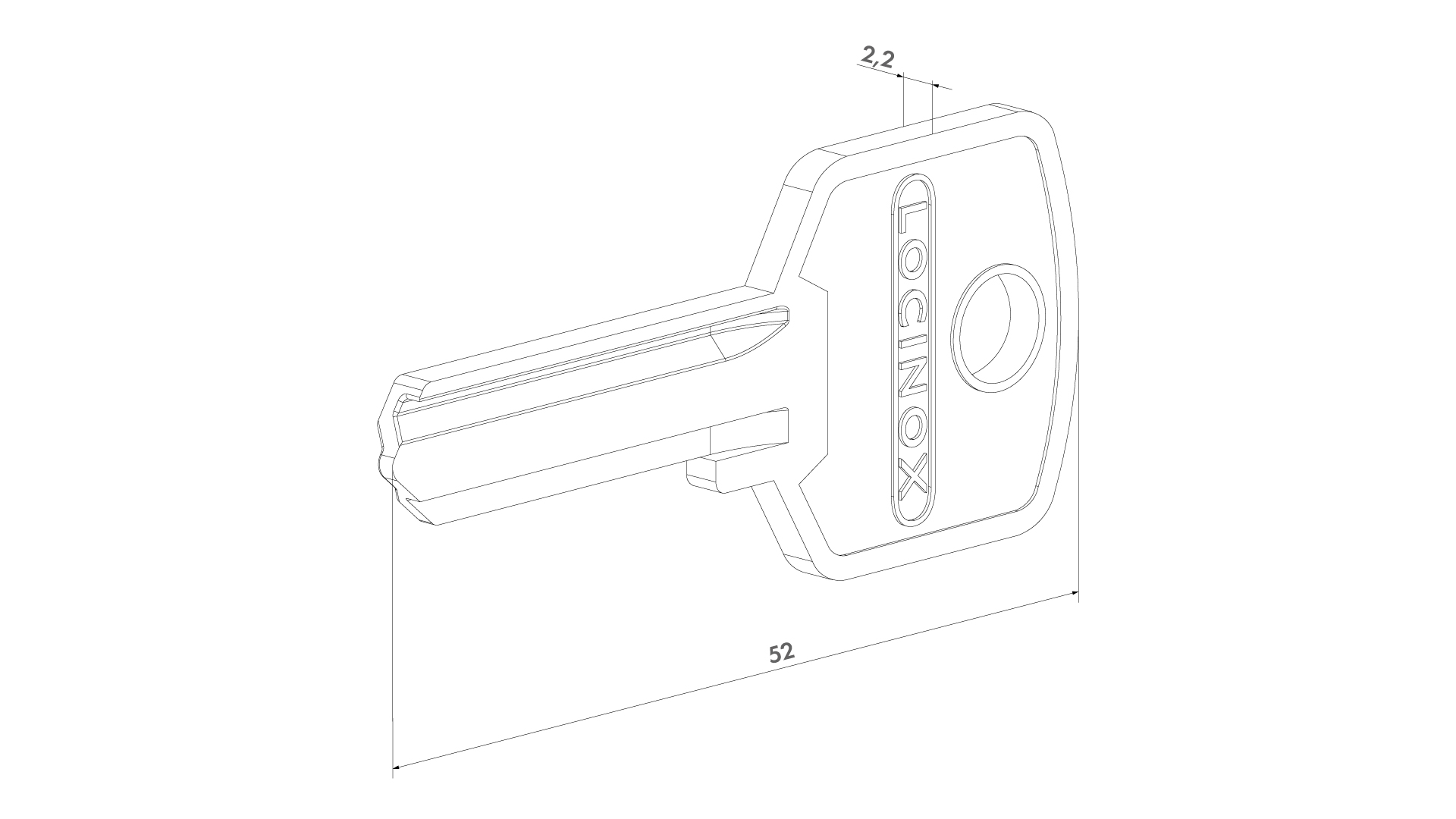 LOCINOX® klíč pro cylinrické vložky 3012-54, surový
