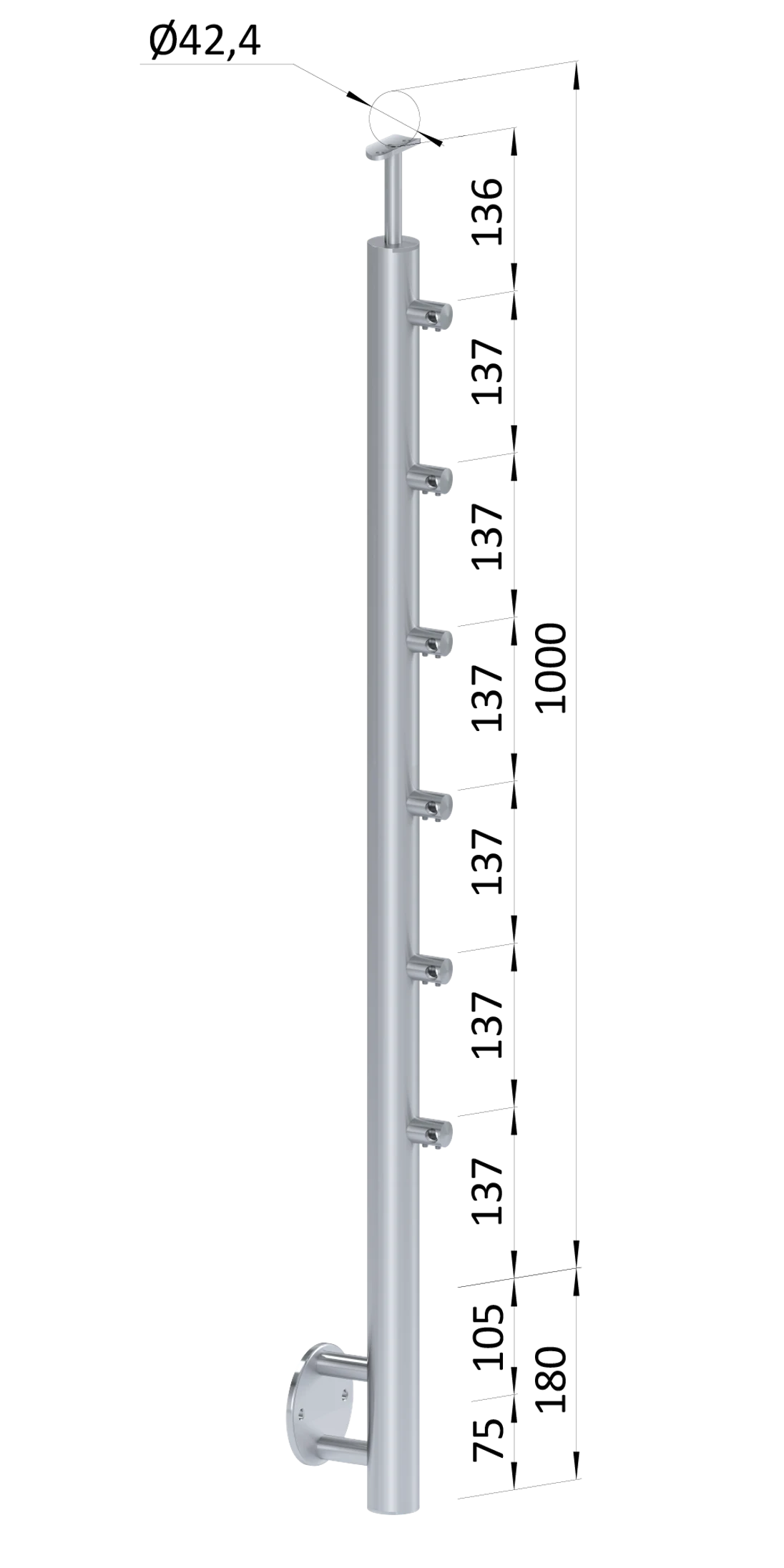 Nerezový sloup, boční kotvení, 6řadový průchozí