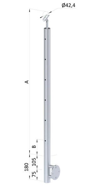 Nerezový sloup, boční kotvení, 6děrový, lanko, koncový