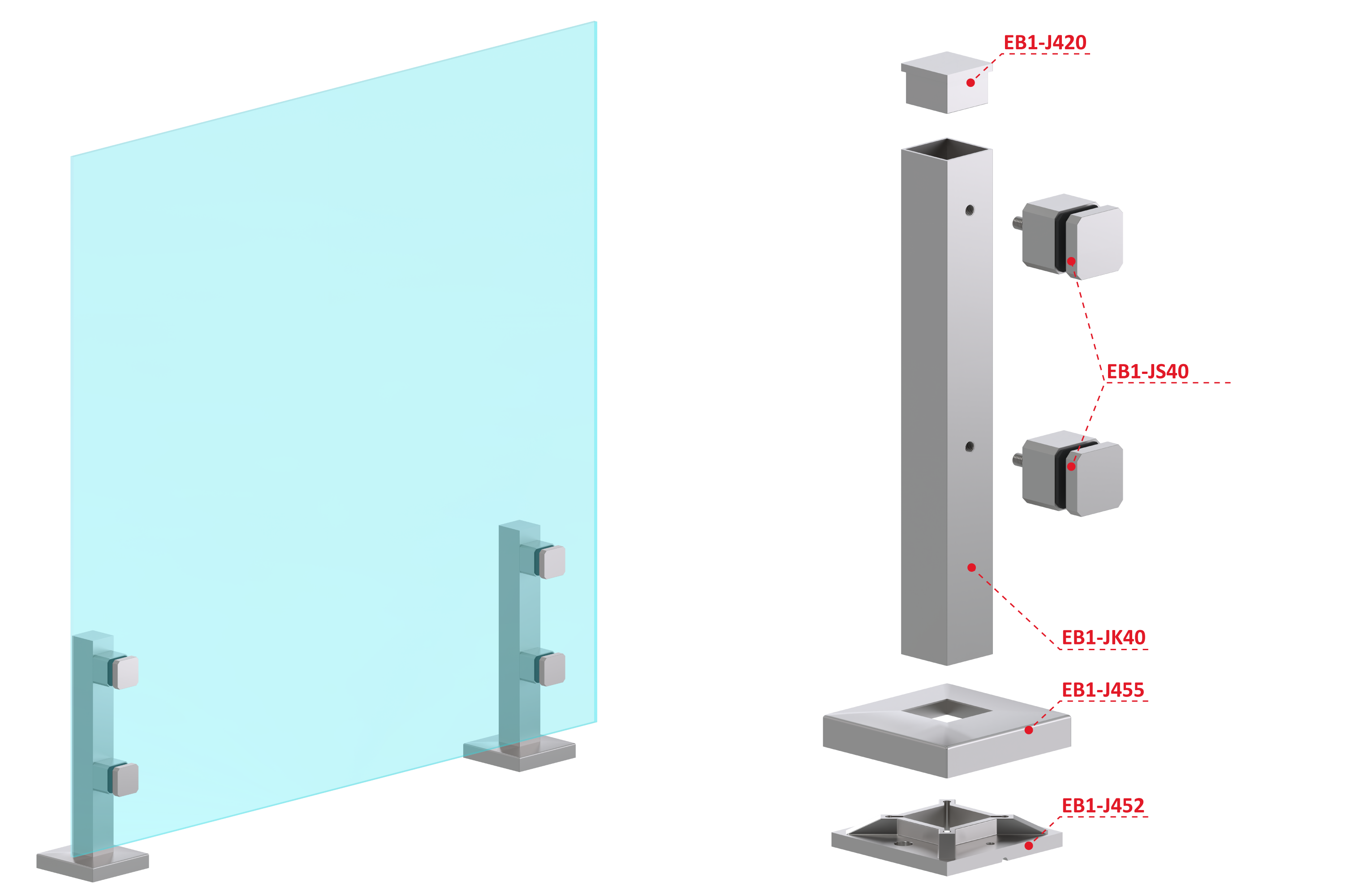 Nerezový sloupek na sklo se dvěma svorkami ø40mm