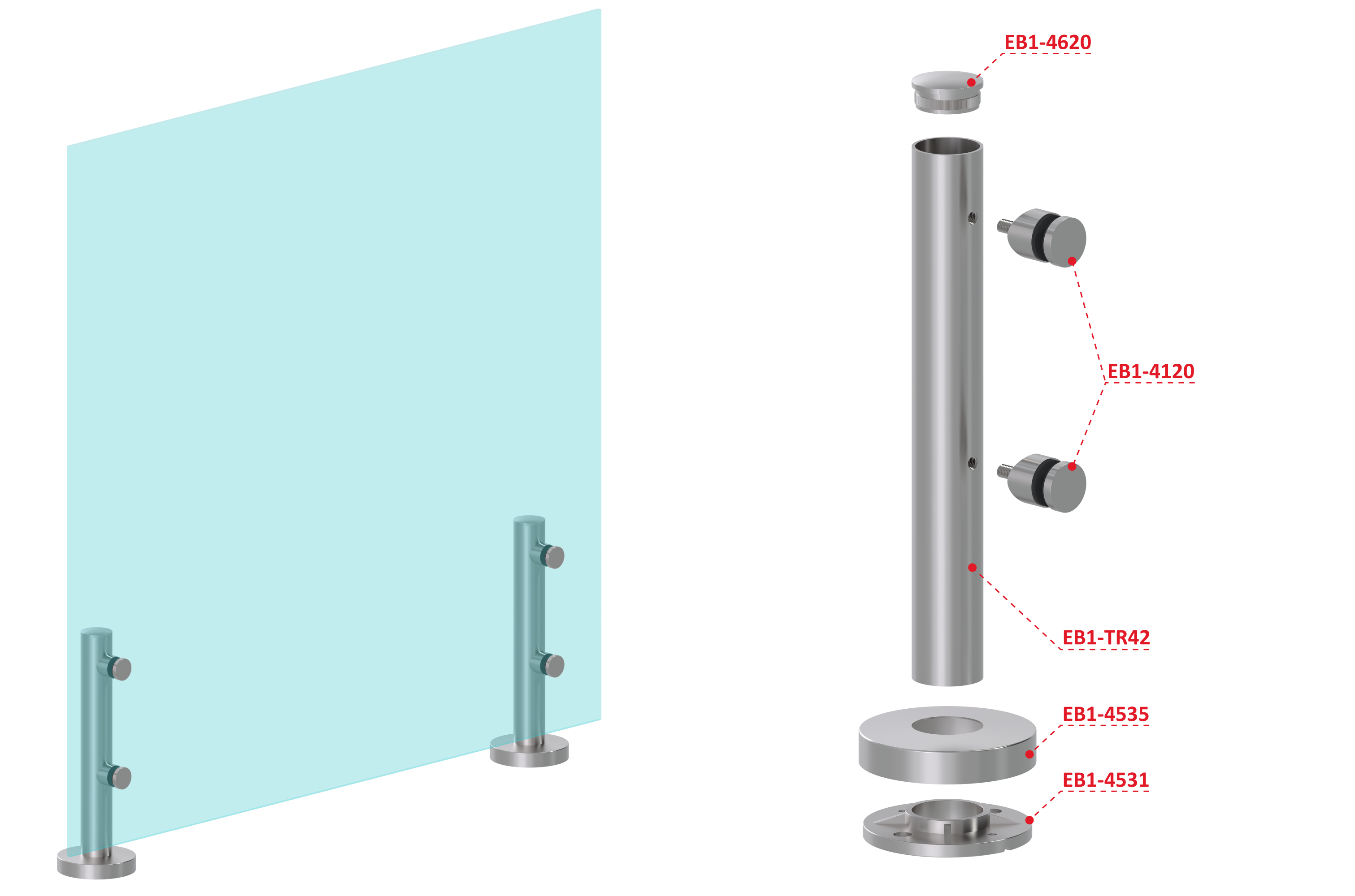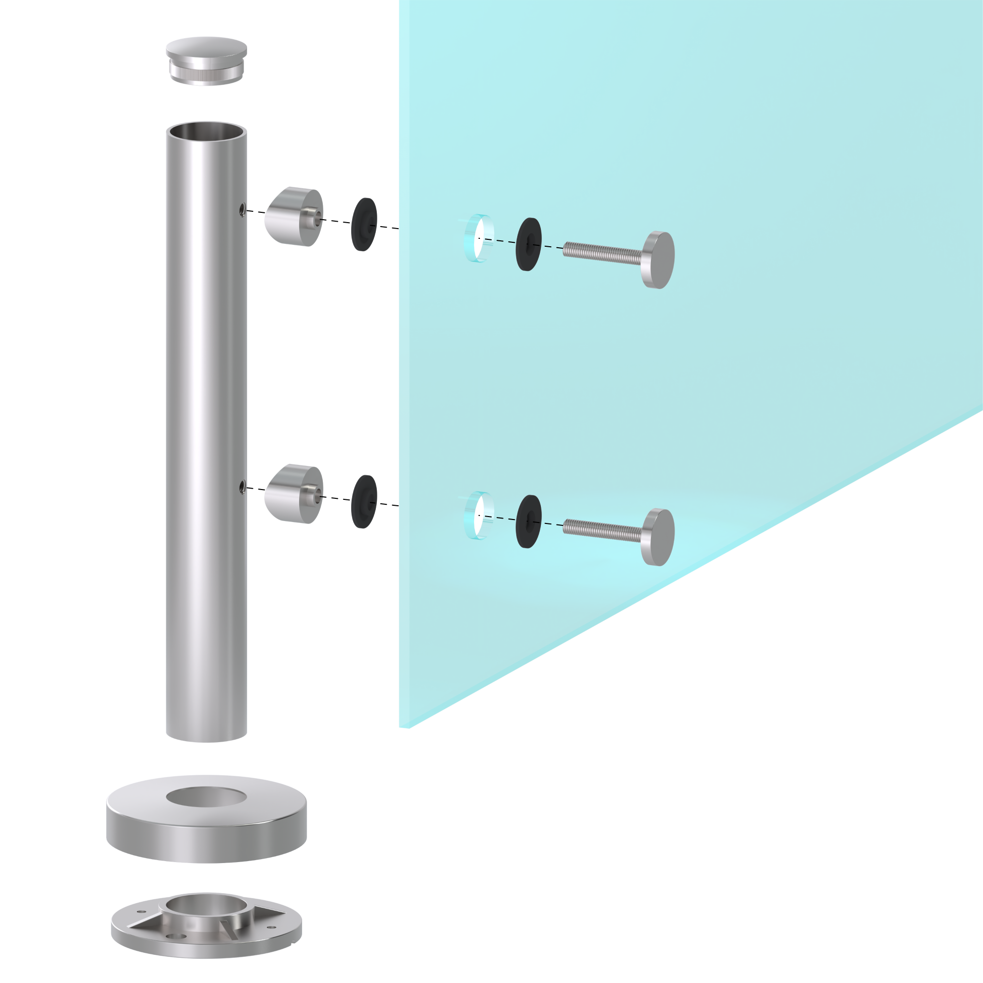 Nerezový sloupek na sklo se dvěma svorkami AISI 304