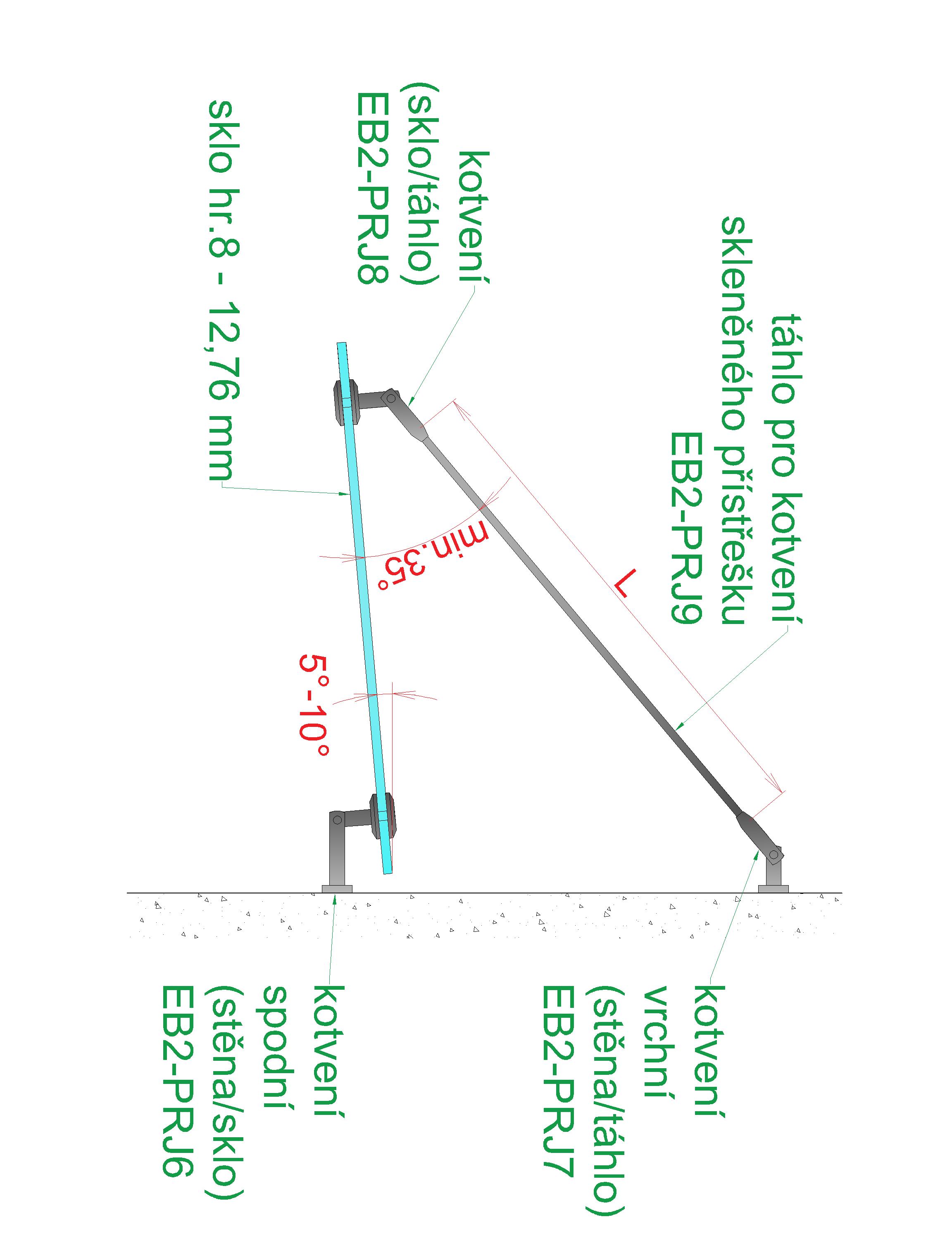 Táhlo pro kotvení skleněného přístřešku, broušená AISI 316