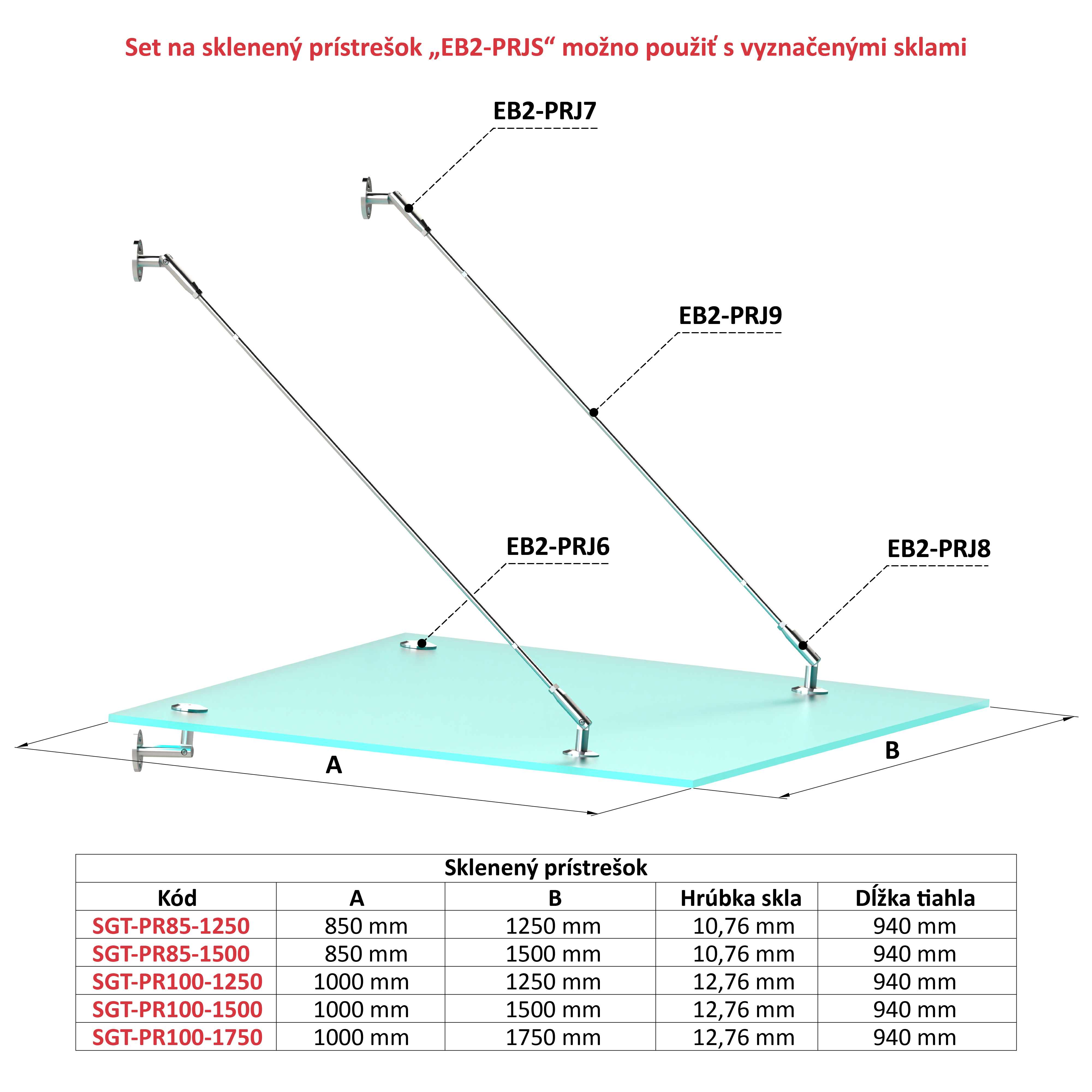 Set na skleněný přístřešek pro sklo 8-12.76 mm, (set obsahuje: EB2-PRJ8 2 ks, EB2-PRJ9 2 ks), broušená nerez K320 / AISI316