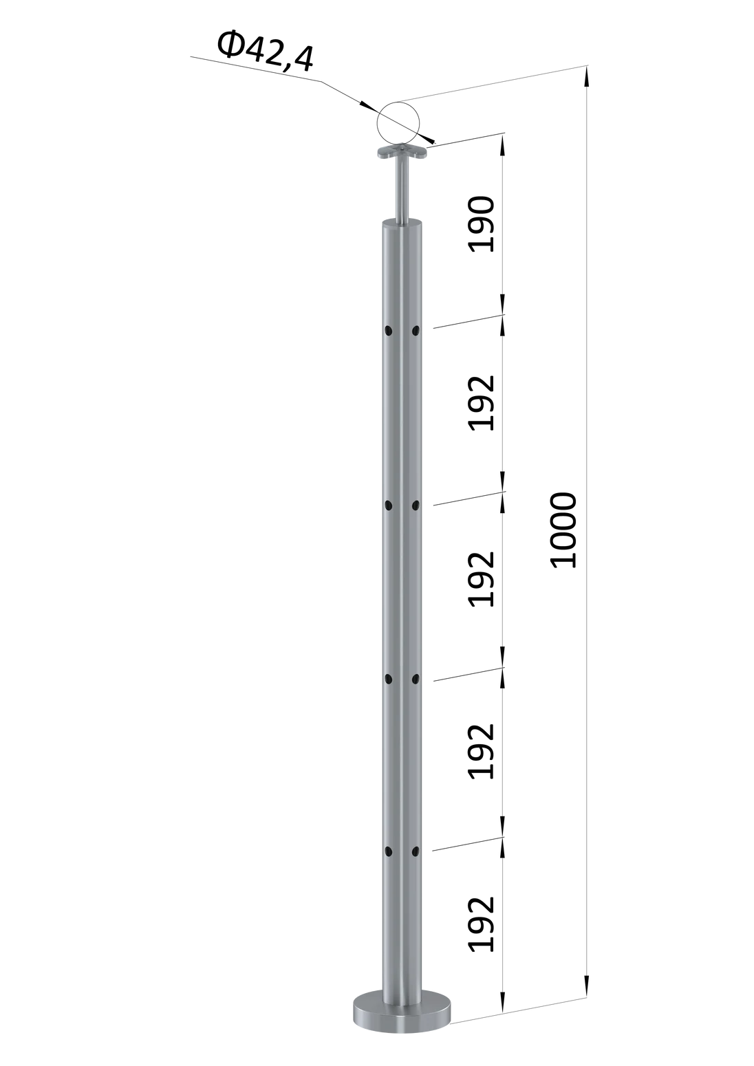 Nerezový sloup, vrchní kotvení, 4děrový rohový: 90°