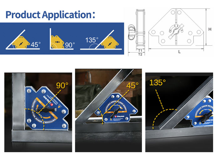 Svařovací magnet, 50kg, měřící úhly: 45, 90, 135, feritový