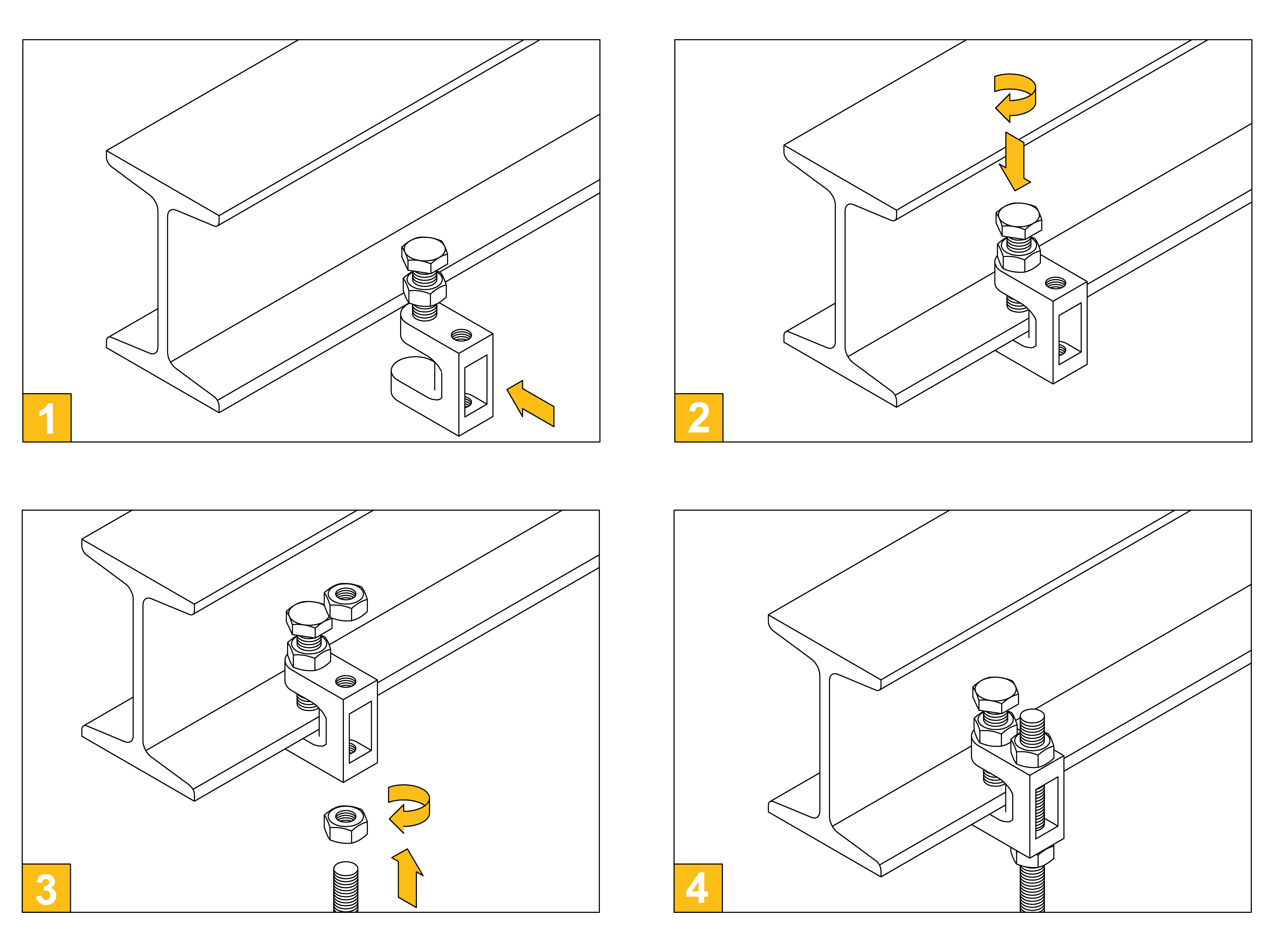 Pomocí nosné svěrky je možné upevnění na válcované profily I, IPE, U, UPE, HEA, HEB, L bez vrtání a svařování.