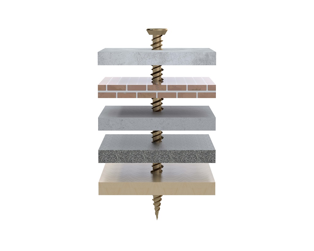 Šroub turbo na kotvení plastových, dřevěných nebo kovových rámů oken a dveří bez pnutí a přídavné hmoždinky do zdiva, betonu, plných cihel, pórobetonu, tvárnic, děrovaných cihel a přírodního kamene.